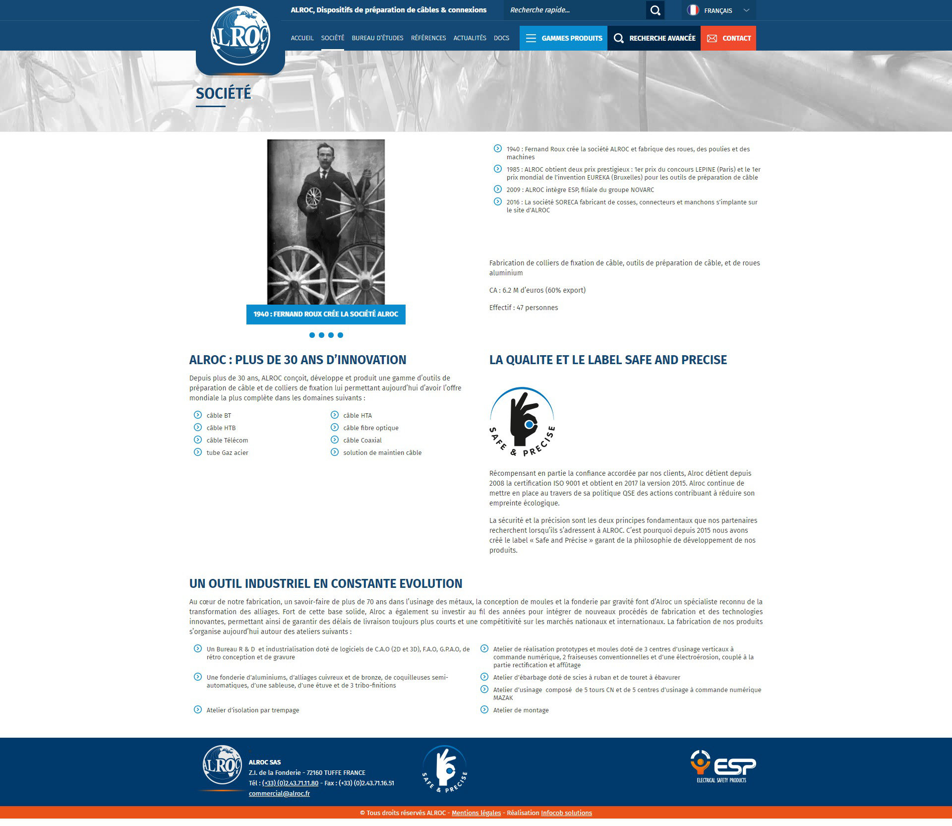 Infocob Web publie le site Internet de la société ALROC, basée à Tuffé (72). Cette dernière est spécialisée dans la fabrication de dispositifs de préparation de câbles & connexions.